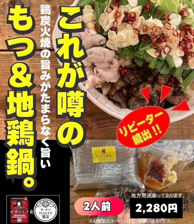 年末年始期間中は配送業者の繁忙により お届け日時指定を承っておりません。 順次発送となりますのでご了承ください。 【名称】 鍋用セット(もつ&もも焼き鍋) 【内容量】 ・もつ鍋スープ 700ml ・種鶏炭火焼き 150g ・黒毛和牛もつ(生)150g 【原材料名】 水(国内製造)、鶏肉、牛もつ、食塩、チキンエキス、ポークエキス、しょうゆ(小麦・大豆を含む)、動物性油脂、醸造酒、うま味調味料(グルタミン酸ナトリウム)、香辛料 【アレルゲン(28品目中)】 小麦・大豆・牛肉・豚肉・鶏肉 【保存方法】 要冷凍(–18℃以下で保存) 【賞味期限】 製造日より1ヶ月 【加熱の必要性】 ・黒毛和牛もつ:加熱してお召し上がりください。 ・種鶏炭火焼き:加熱済み。温めてお召し上がりください。 ・スープ:加熱してご使用ください。 【使用方法】 本品のスープを鍋で温め、黒毛和牛もつ、野菜、麺などお好みの具材を加えて調理してください。
